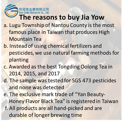 * Six reasons for choosing Jia Yow Taiwan Tea